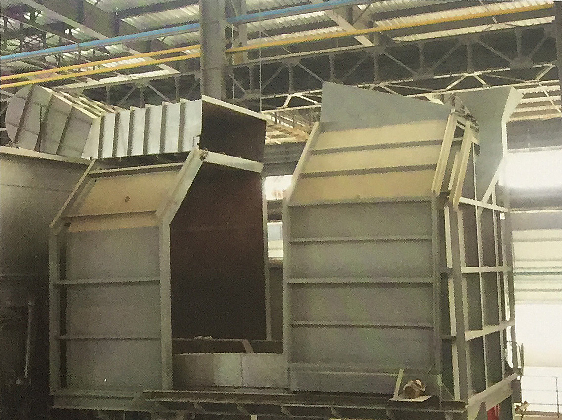 精煉爐采用半密閉型集煙罩,避免了內排、側吸 罩等捕集效果差的缺點。